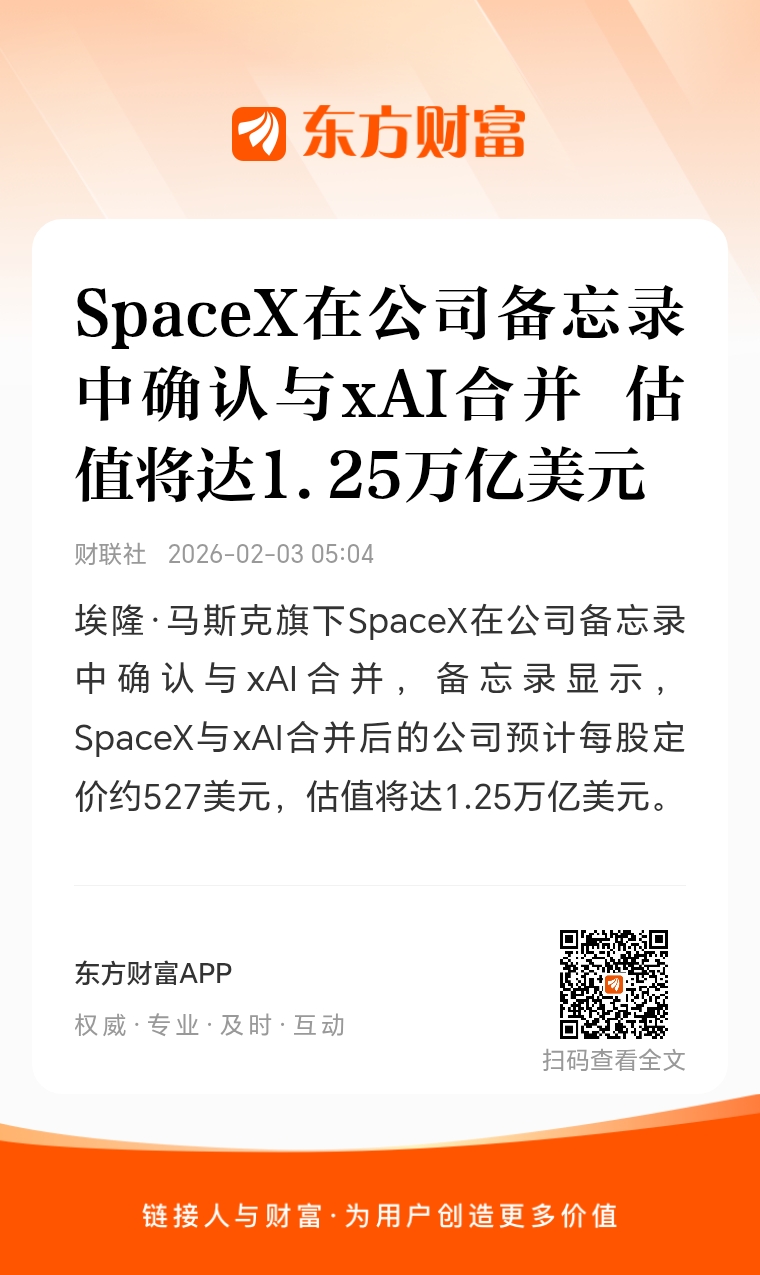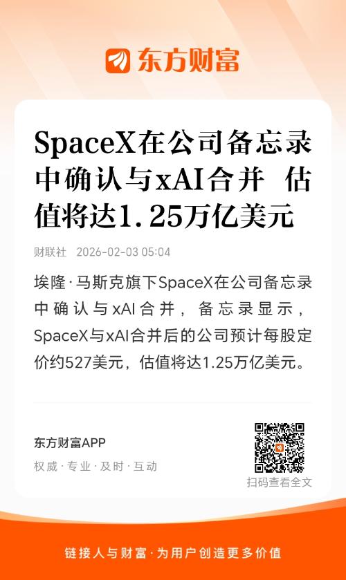 官宣!SpaceX、xAI合并!据称估值1.25万亿美元