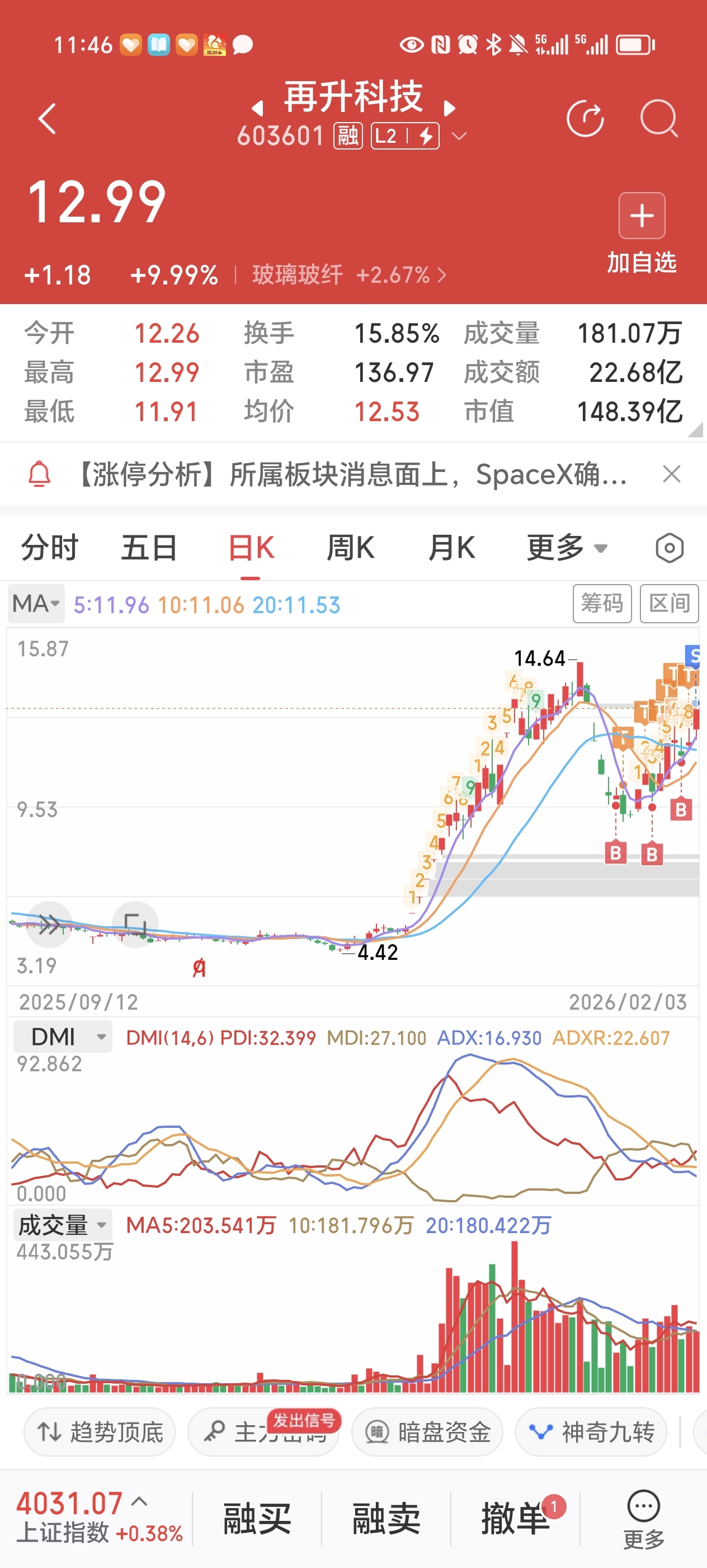 $再升科技(SH603601)$ 坚持了12天