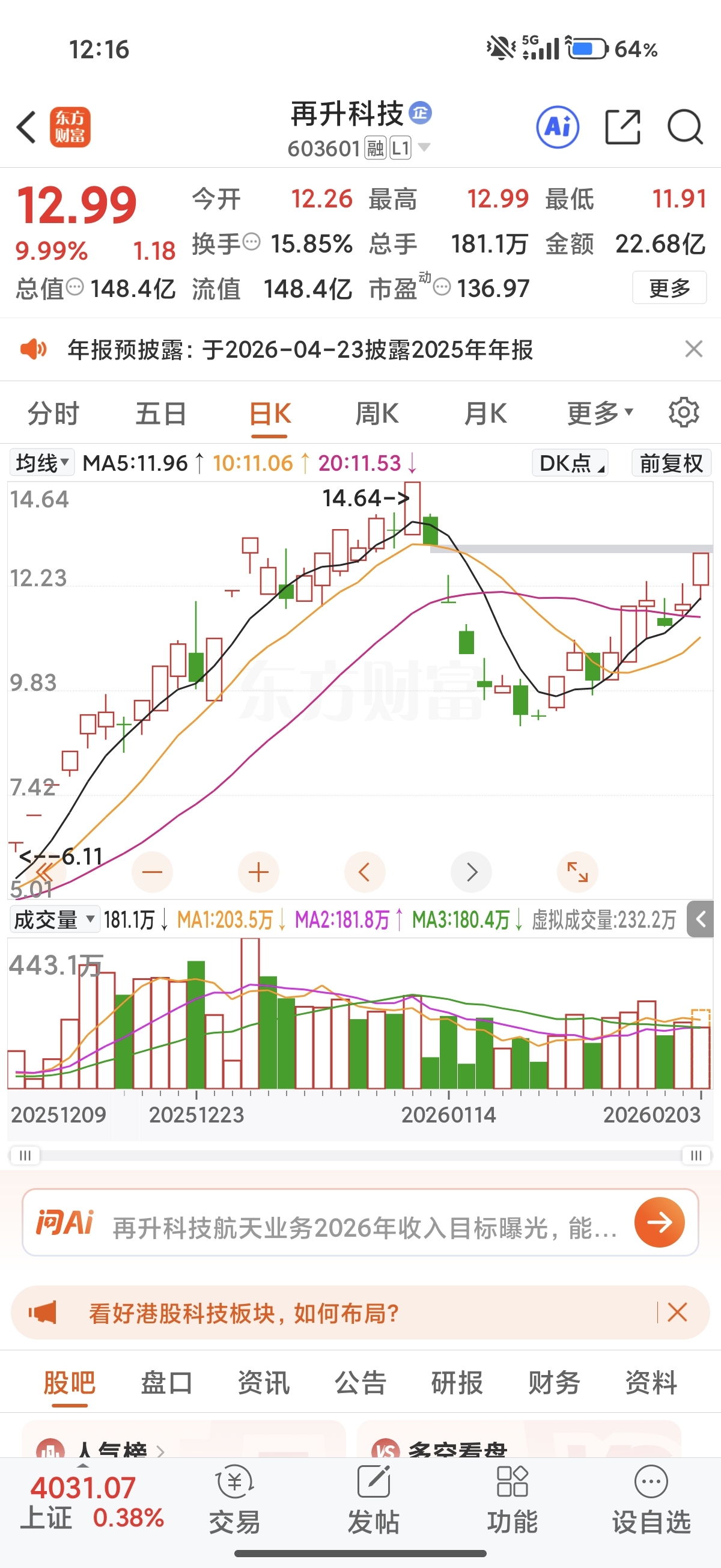 $再升科技(SH603601)$ 老鸭头