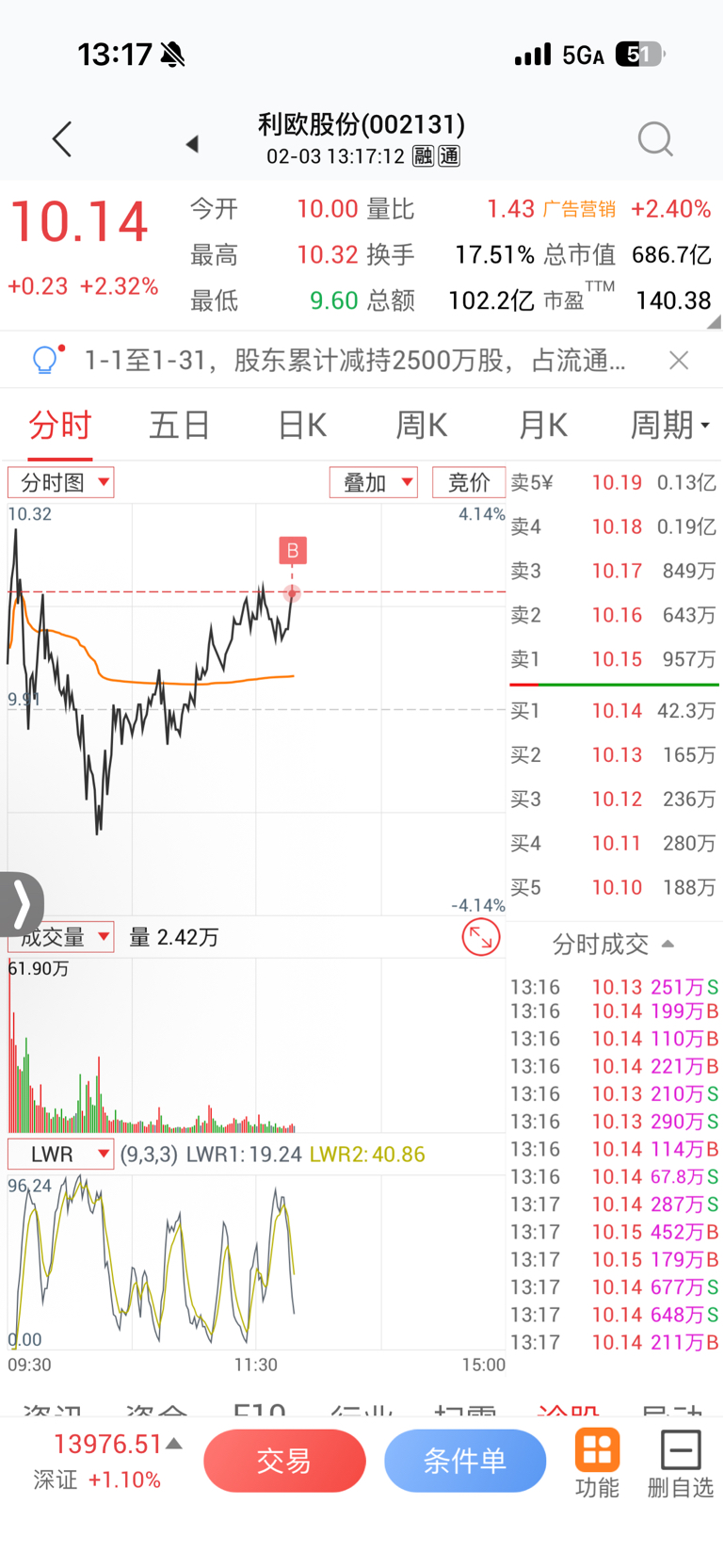 神剑不动,再升出四分之一,买入利欧股份。