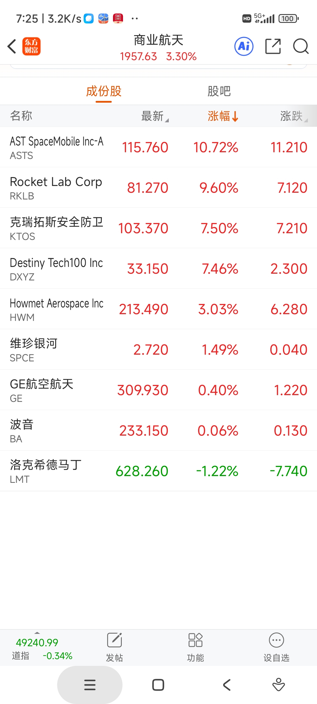 $再升科技(SH603601)$ 美股商业航天股大涨3.30%