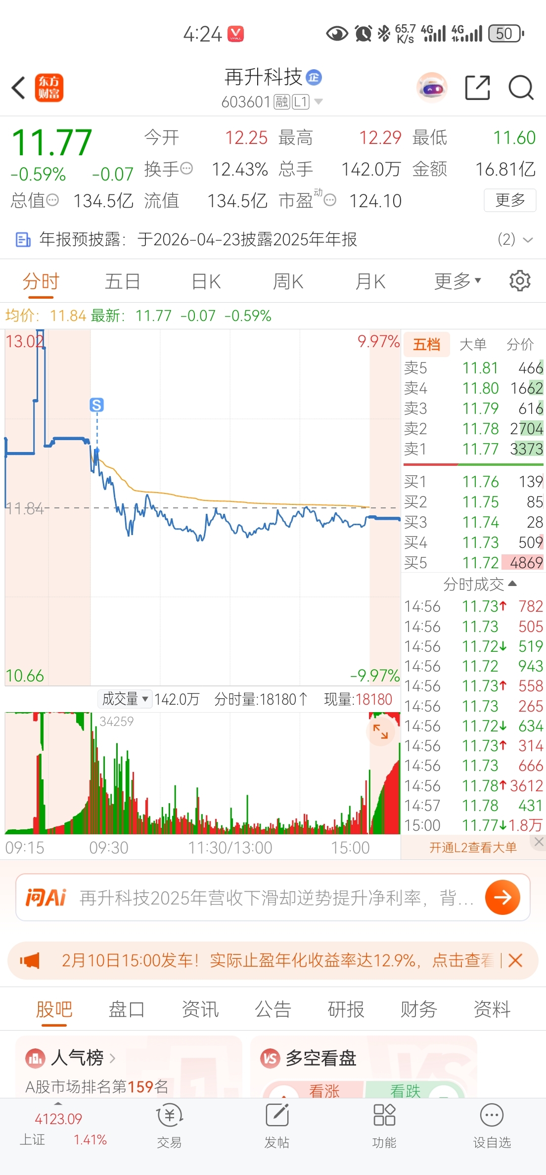 $再升科技(SH603601)$ 3月见