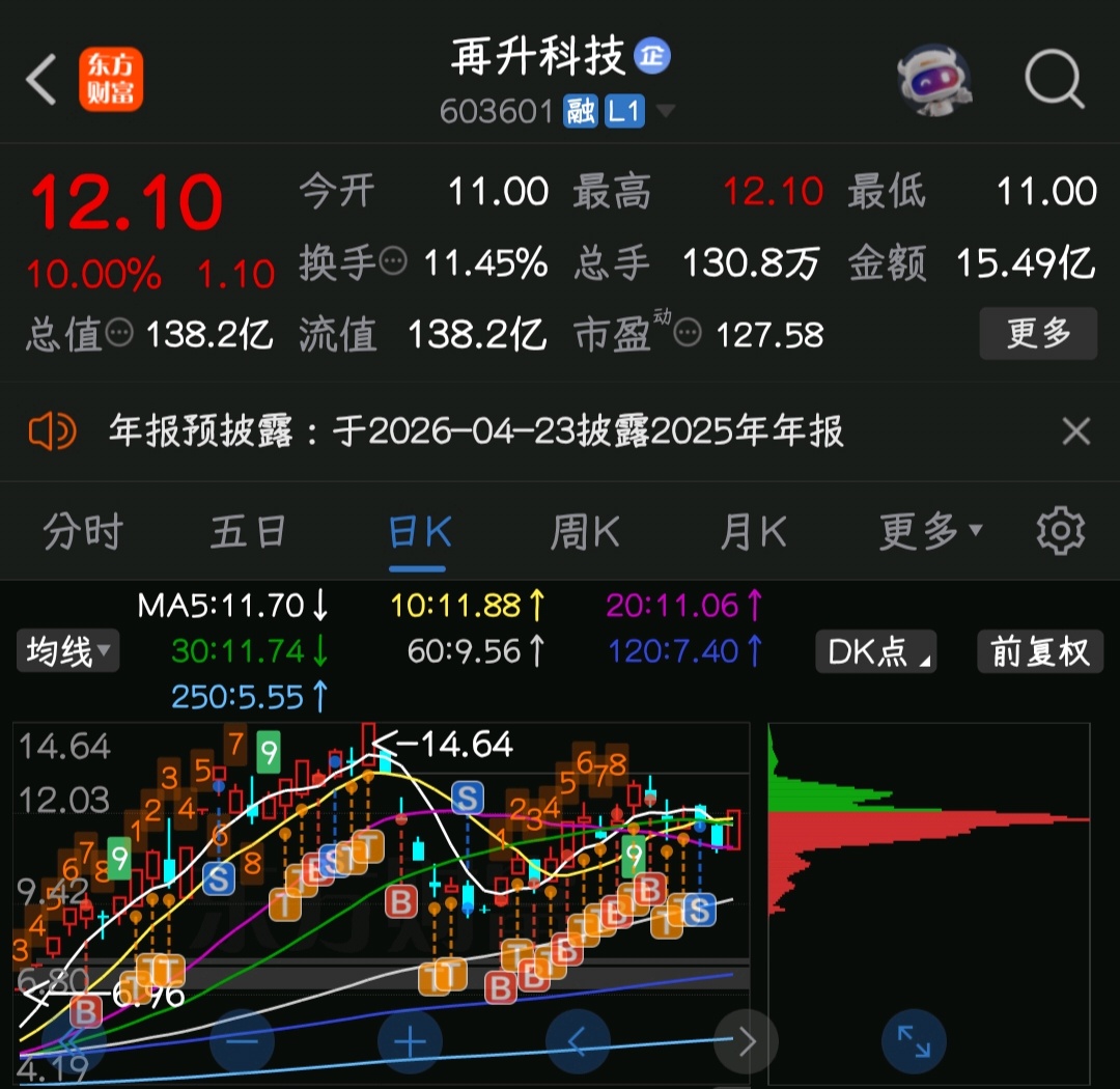 $再升科技(SH603601)$ 时也命也……以后有机会再说吧