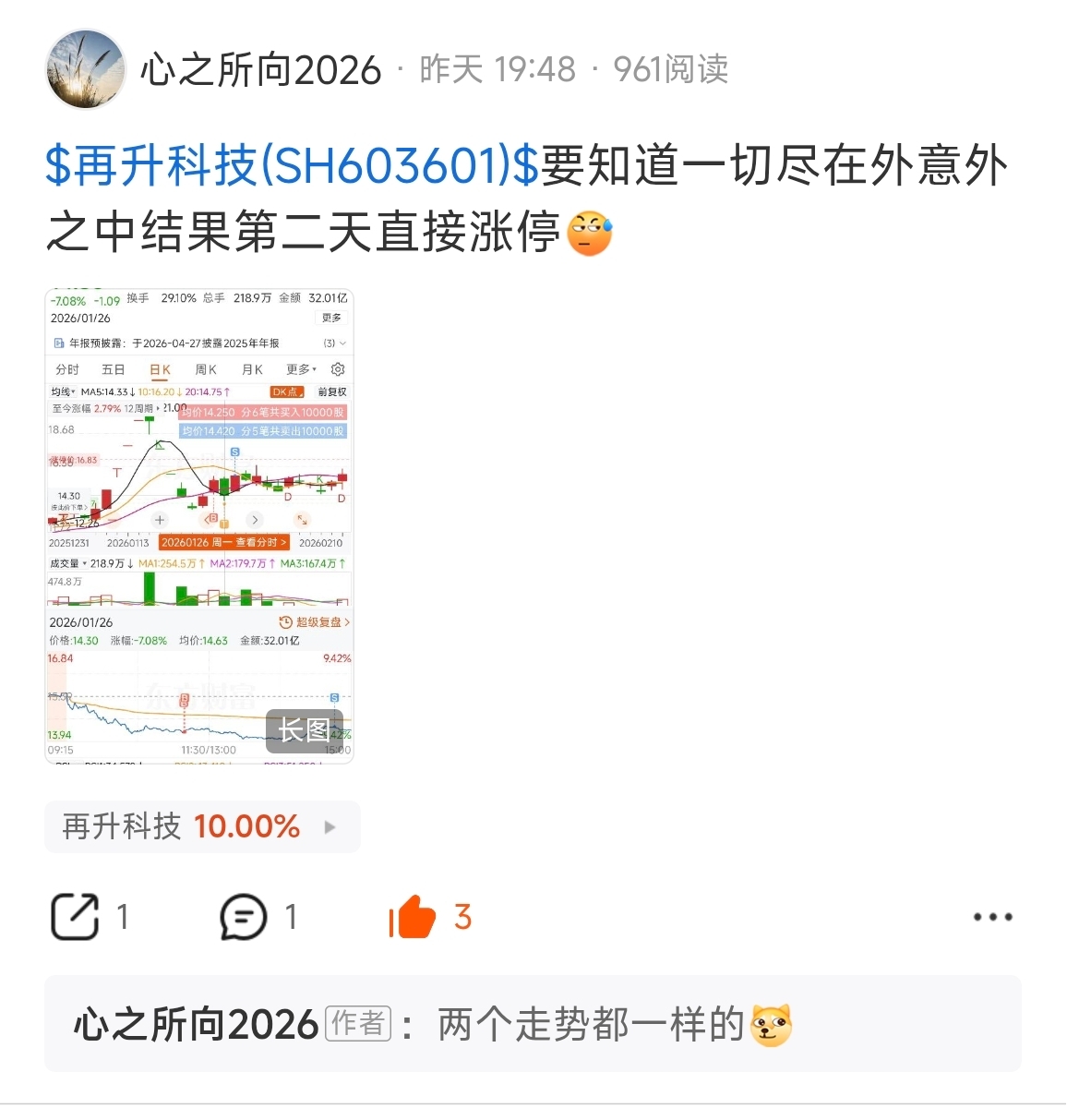 $再升科技(SH603601)$ 为啥每次都这么准