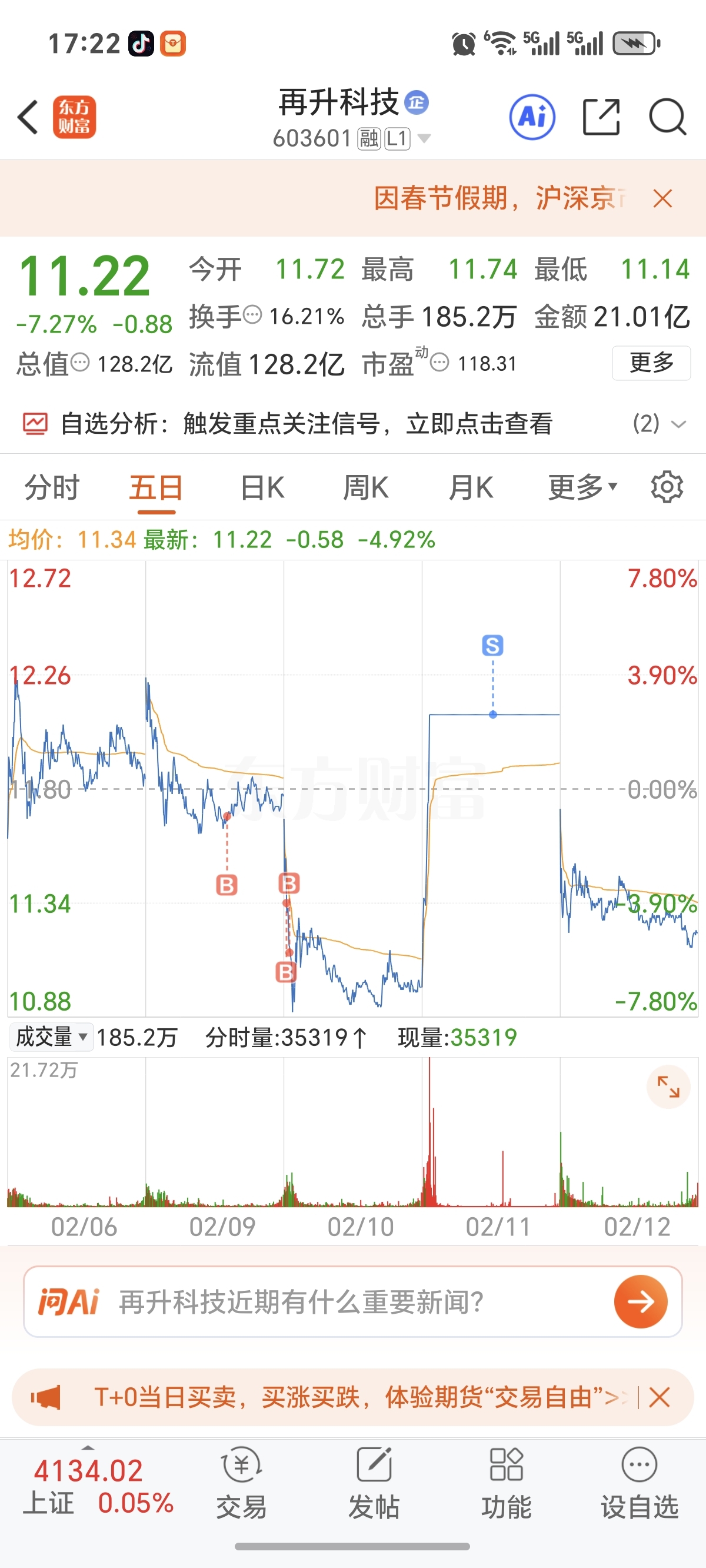 $再升科技(SH603601)$ 昨天觉得卖飞了,收盘一看吓一跳
