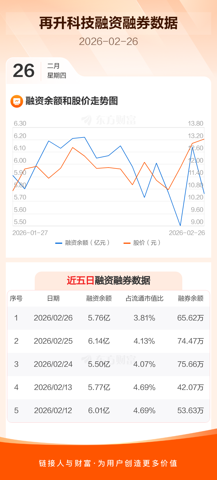 交易所最新数据显示,再升科技于2026年2月26日获融资买入2.51亿元,融资偿还2.89亿元,当日融资净偿还3807.68万元。目前,该股融资余额5.76亿,占流通市值比例为3.81%。