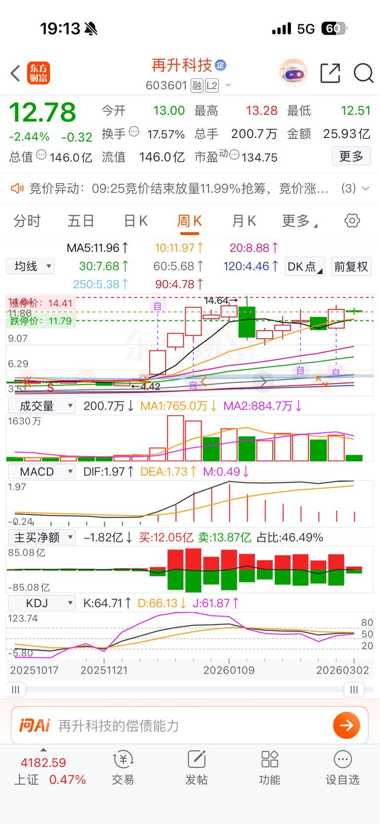 $再升科技(SH603601)$ 再升科技正在由前期的连板股转向趋势,量化操盘是典型特征之一,密切注意仓位管理。趋势未破锁仓不止