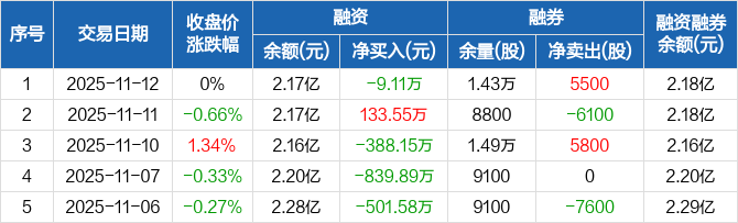 纵横通信:融资净偿还9.11万元,融资余额2.17亿元(11-12)
