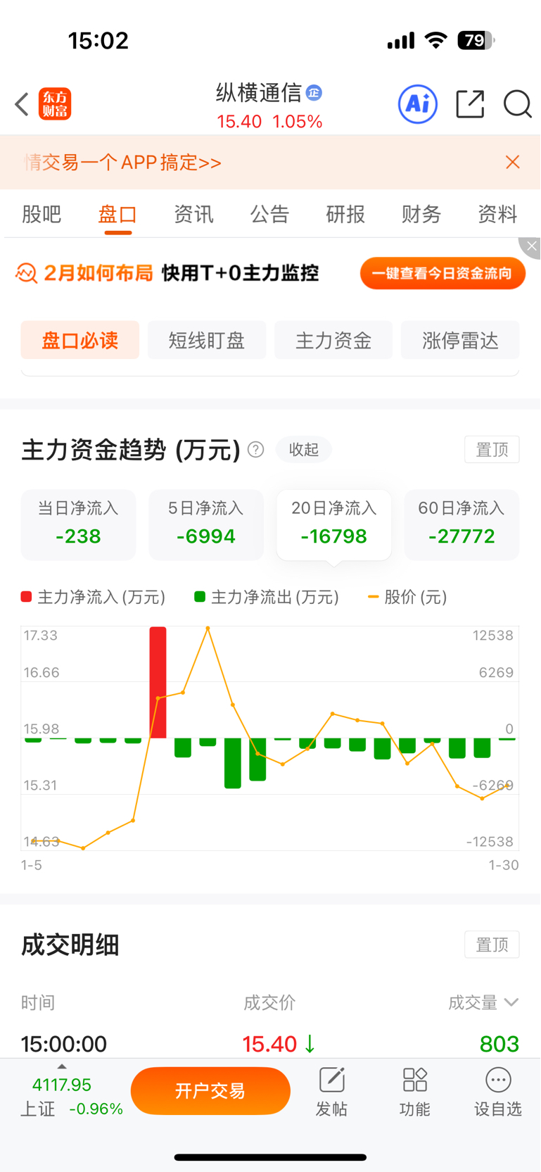$纵横通信(SH603602)$ 这票连续流出多少天了,没见过这样的