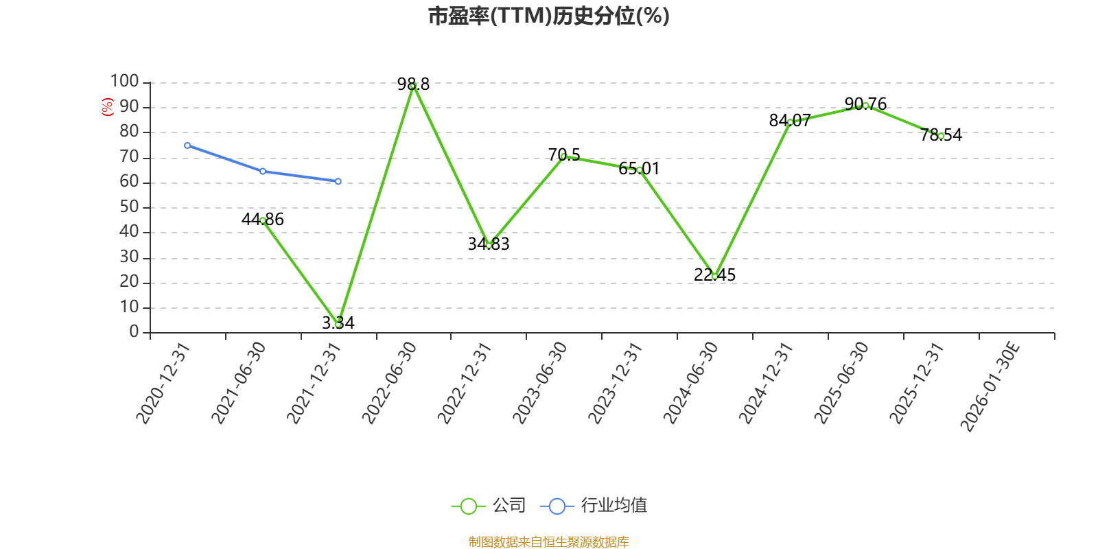 以本次披露业绩预告均值计算,公司近年市盈率(TTM)图如下所示: