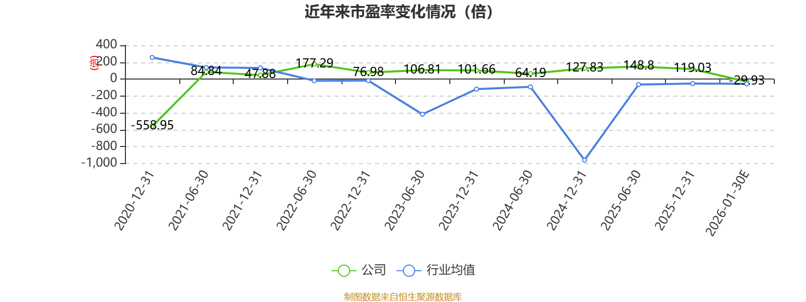 市盈率、市净率为负时,不显示当期分位数,会导致折线图中断。
