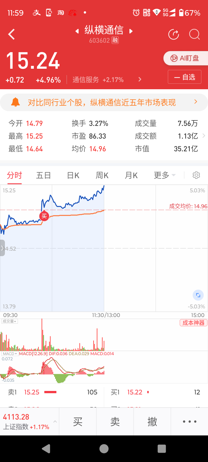15块买入