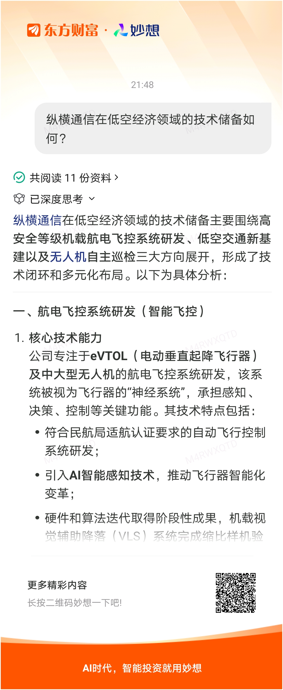 #@妙想,你怎么看?# 妙想一下:纵横通信在低空经济领域的技术储备如何?