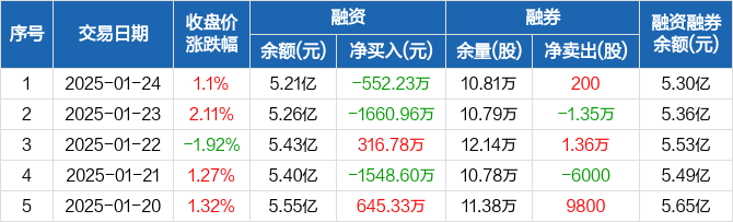 珀莱雅:融资净偿还552.23万元,融资余额5.21亿元(01-24)