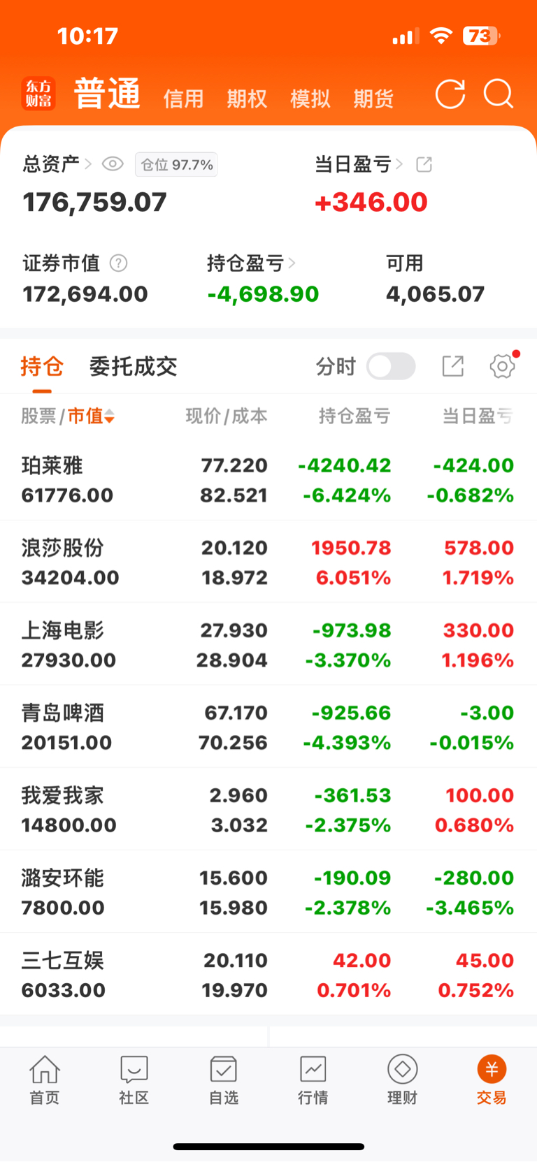 $珀莱雅(SH603605)$ 后悔91的时候没卖,从赚一千到赔四千别的股票跌了会反弹 这个怎么越加仓越跌