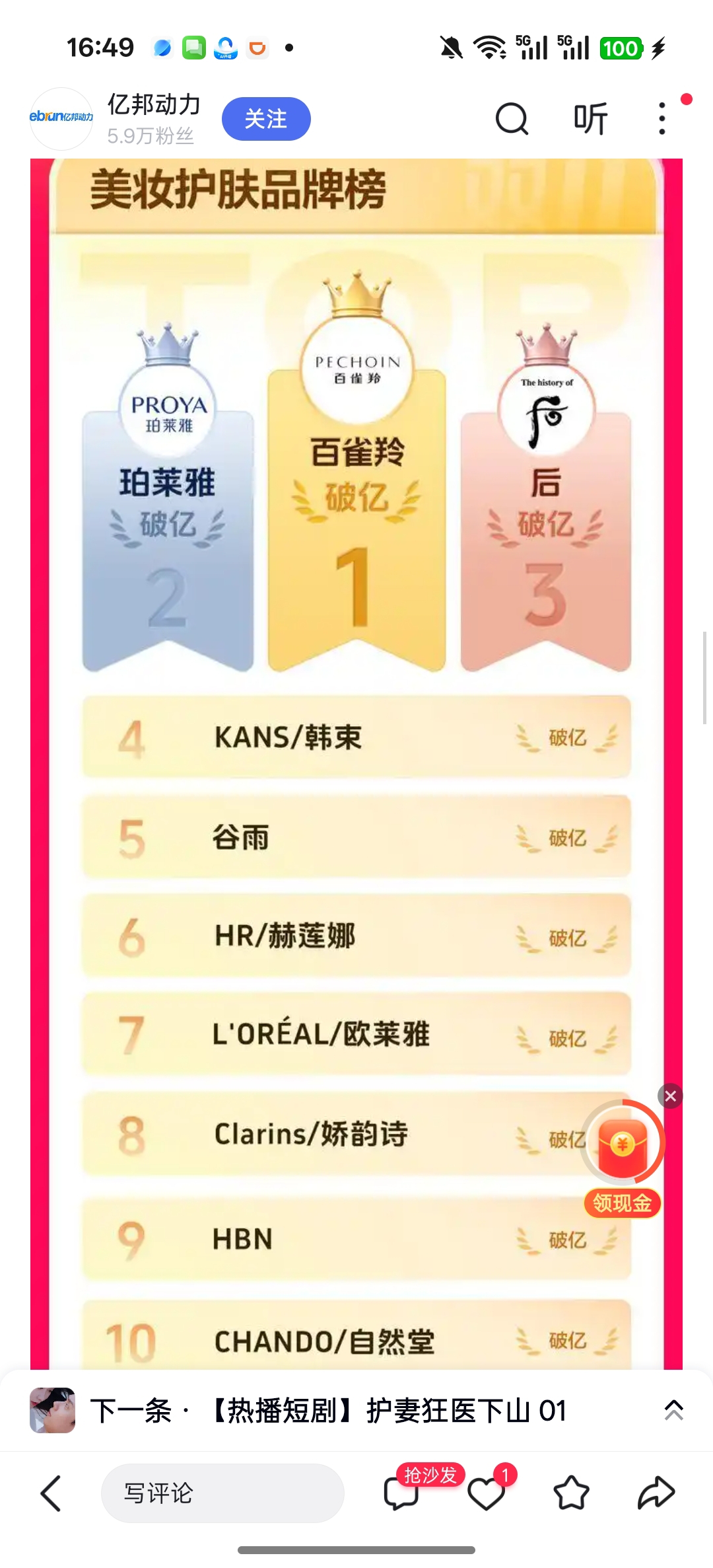$珀莱雅(SH603605)$ 抖音双11还行