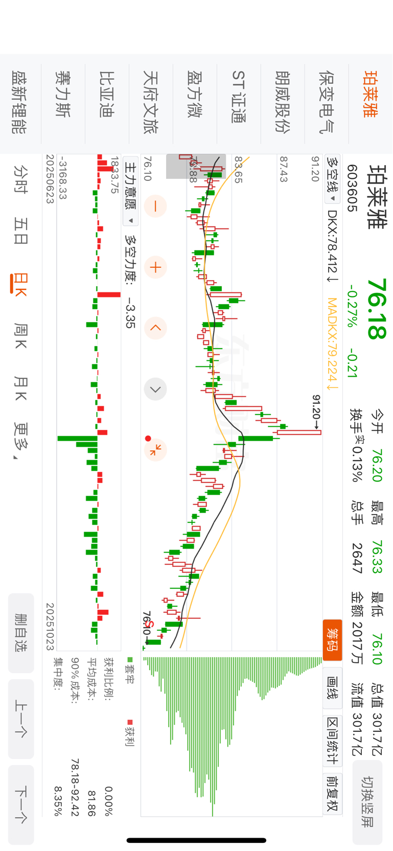 $珀莱雅(SH603605)$ 获利盘为0,真厉害这个票,这个分红直接下杀成这个样子