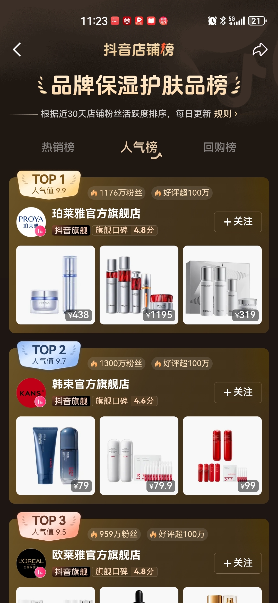 $珀莱雅(SH603605)$ 抖音人气超过韩束了