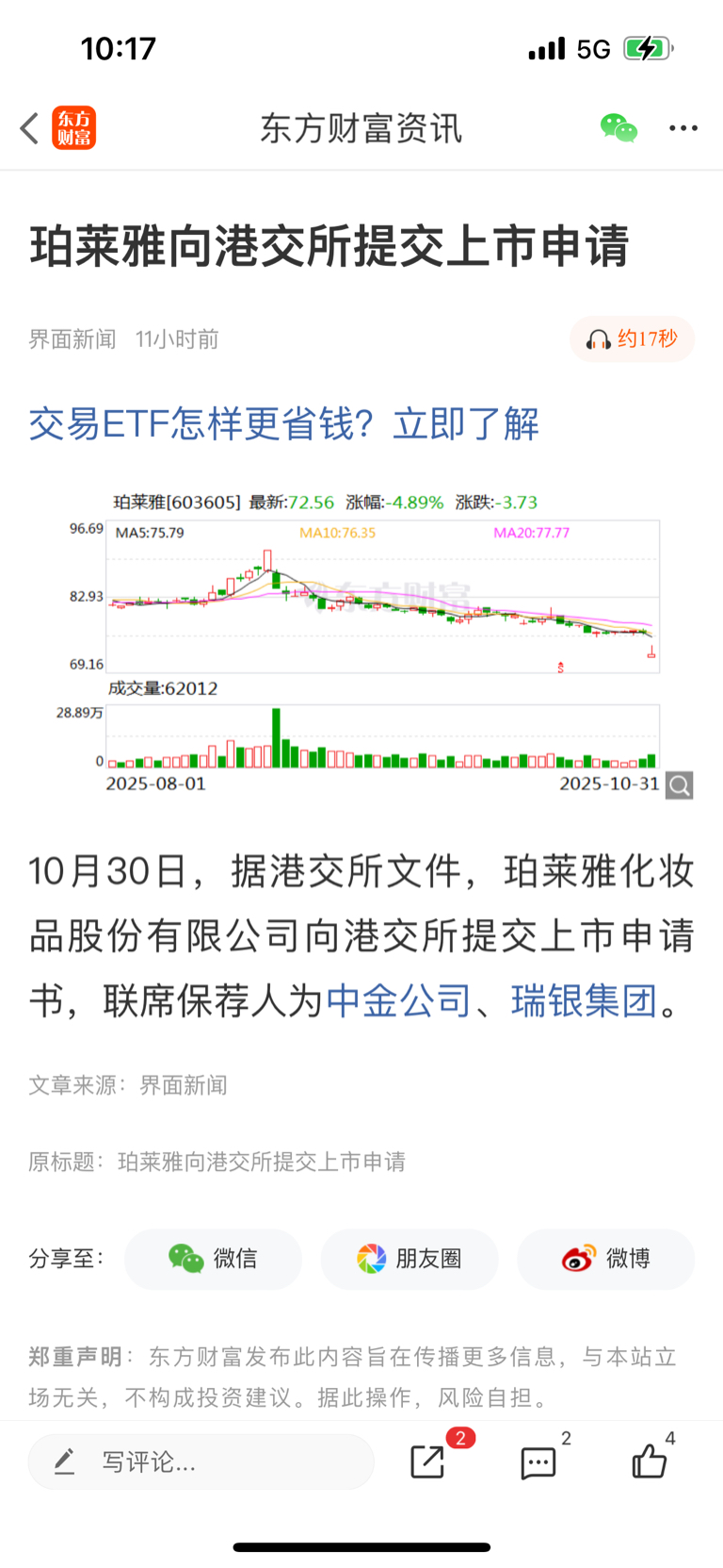 $珀莱雅(SH603605)$ 一个香港上市使珀莱雅开启下跌调整模式,个人觉得真正上涨需要在港股挂牌交易日,这段时间(具体时间不知道,大概率3个月左右)就是低位震荡走势,持股只有耐心等待吧