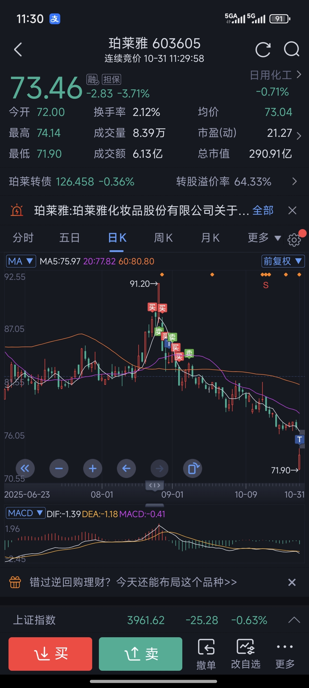 主力给了四次跑路的机会我都没走,怪我,今天扛不住做了个T,继续躺平。所有均线没有