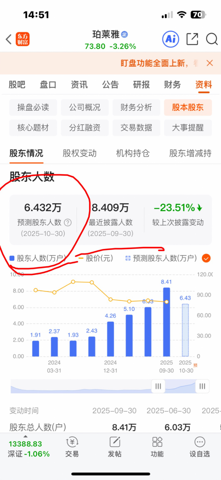 $珀莱雅(SH603605)$ 10月30号的股东人数,一个月少了两万人