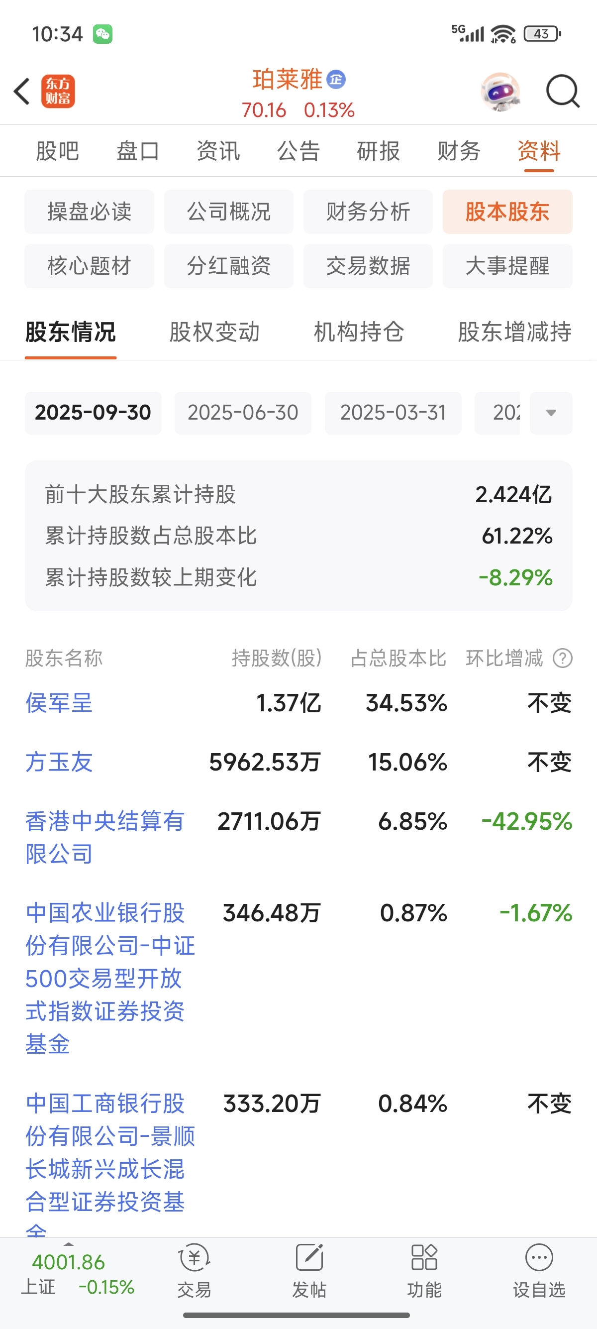 $珀莱雅(SH603605)$ 香港中央结算减持了42%,真土立土及