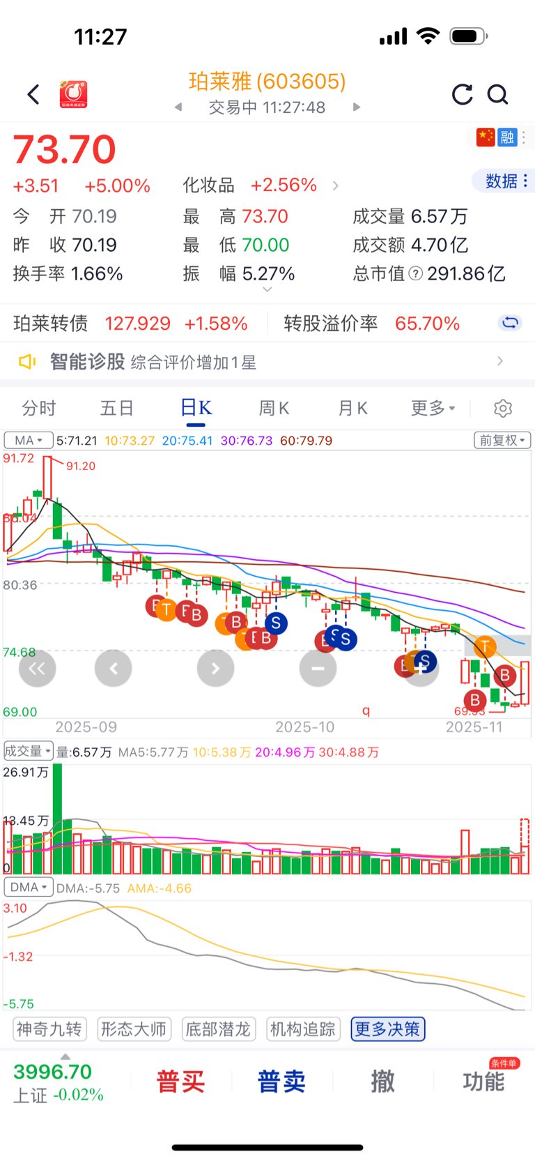 在珀莱雅第一次卖飞下午拉个涨停给我哭哭