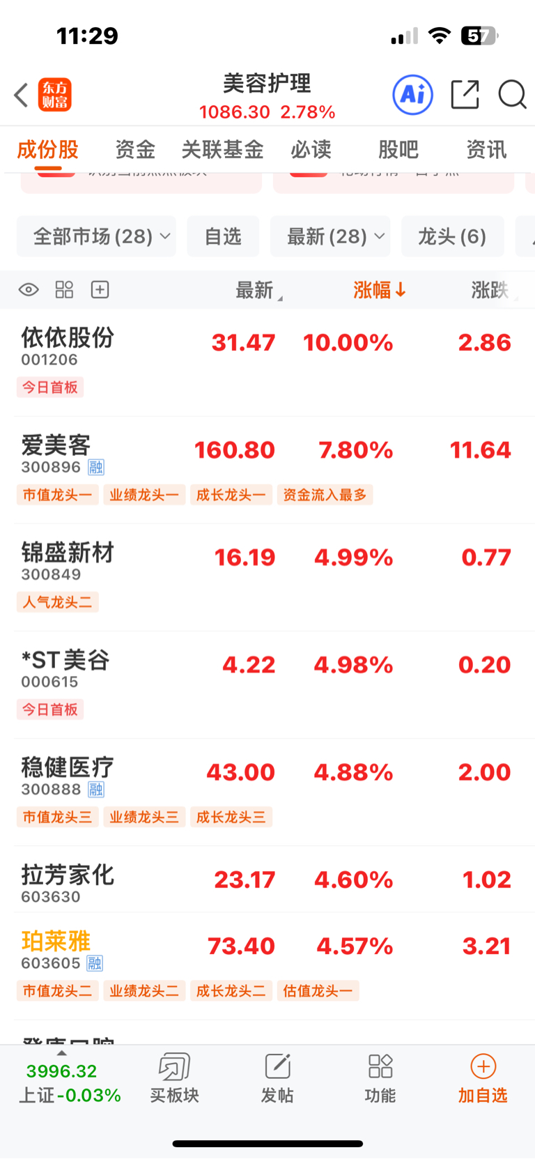 $珀莱雅(SH603605)$ 今天的整个美容护理板块的股票集体拉升