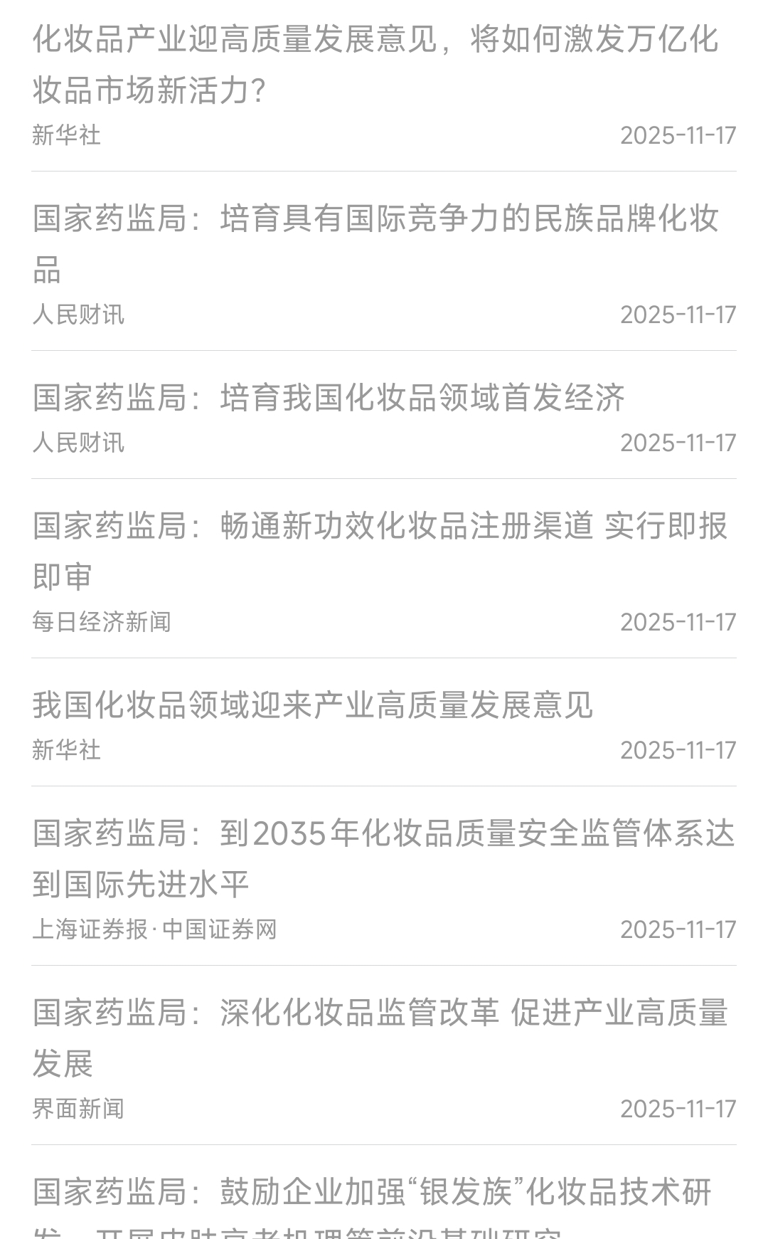 $珀莱雅(SH603605)$ 《国家药监局关于深化化妆品监管改革促进产业高质量发展的意见》提出,促进化妆品银发经济发展。鼓励企业加强“银发族”化妆品的技术研发,开展皮肤衰老机理等前沿基础研究。支持适合老年群体特点和需求的化妆品开发应用和注册备案,满足老年群体多样化消费需求。
