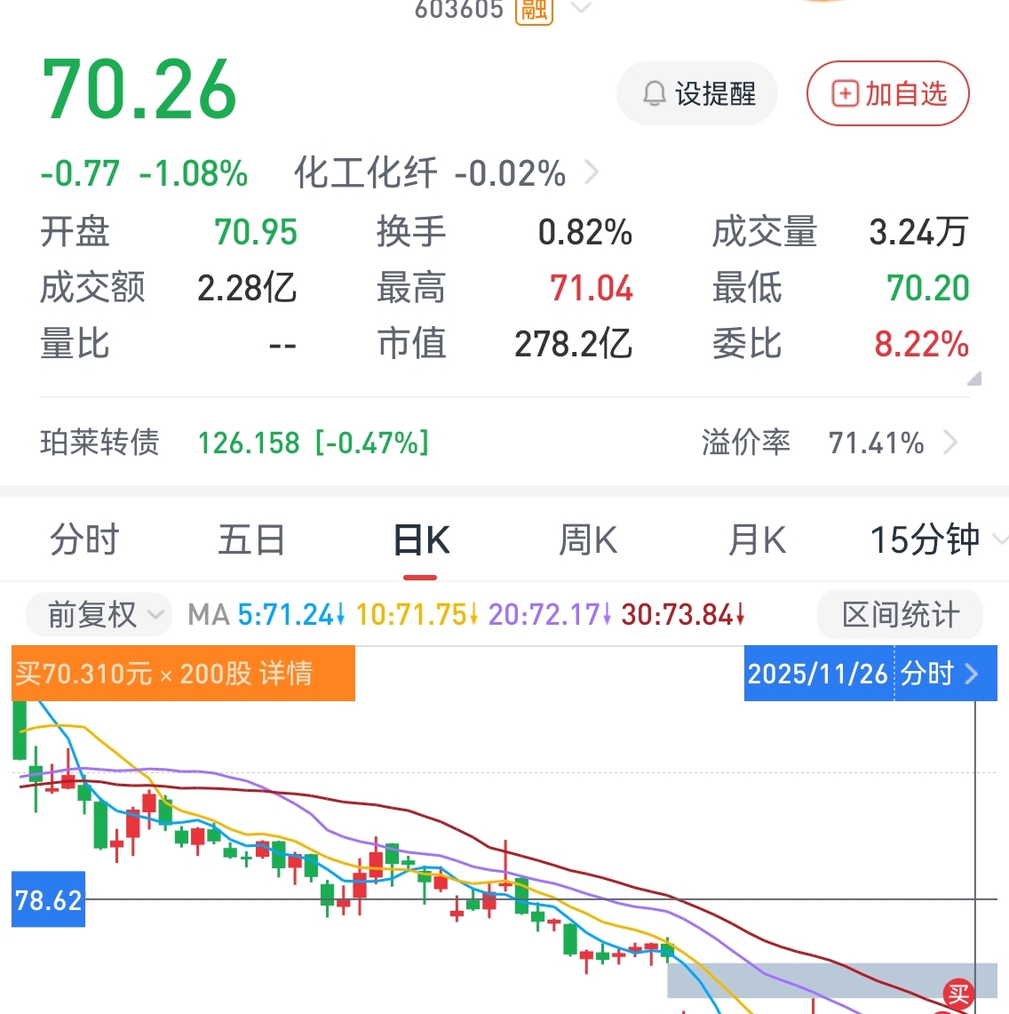 $珀莱雅(SH603605)$ 跌一块钱买两手