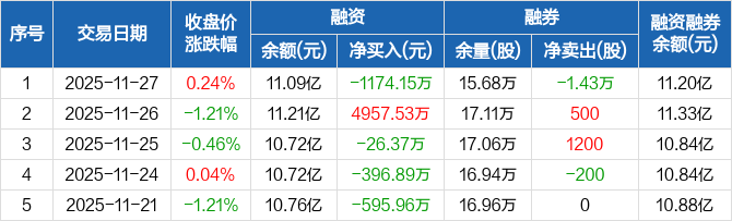 珀莱雅:融资净偿还1174.15万元,融资余额11.09亿元(11-27)