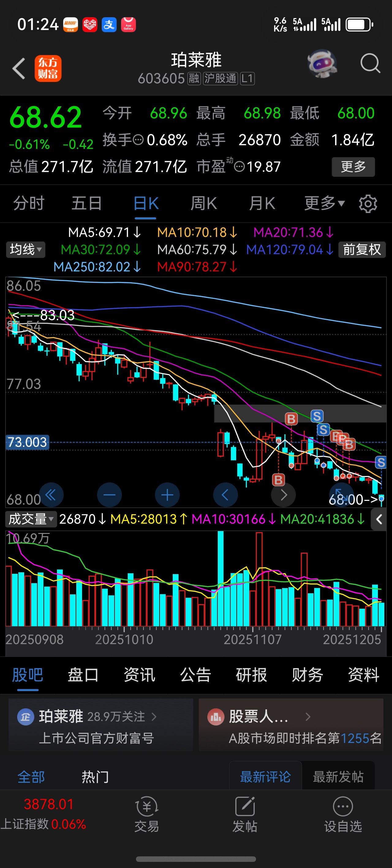 $珀莱雅(SH603605)$ 估计庄就差我这点钱,我全清了,亏4万多,留下来发财
