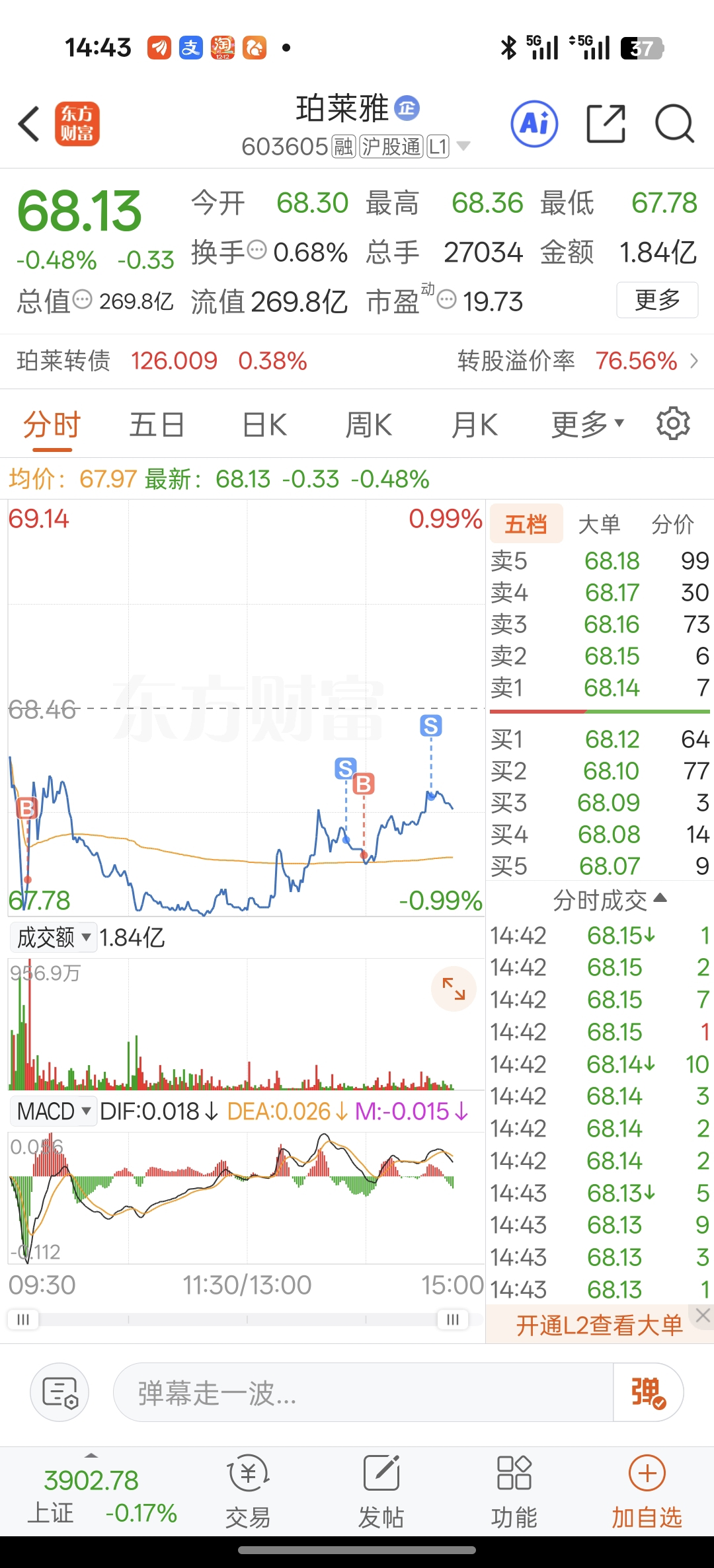 $珀莱雅(SH603605)$ 只能高抛低吸没办法