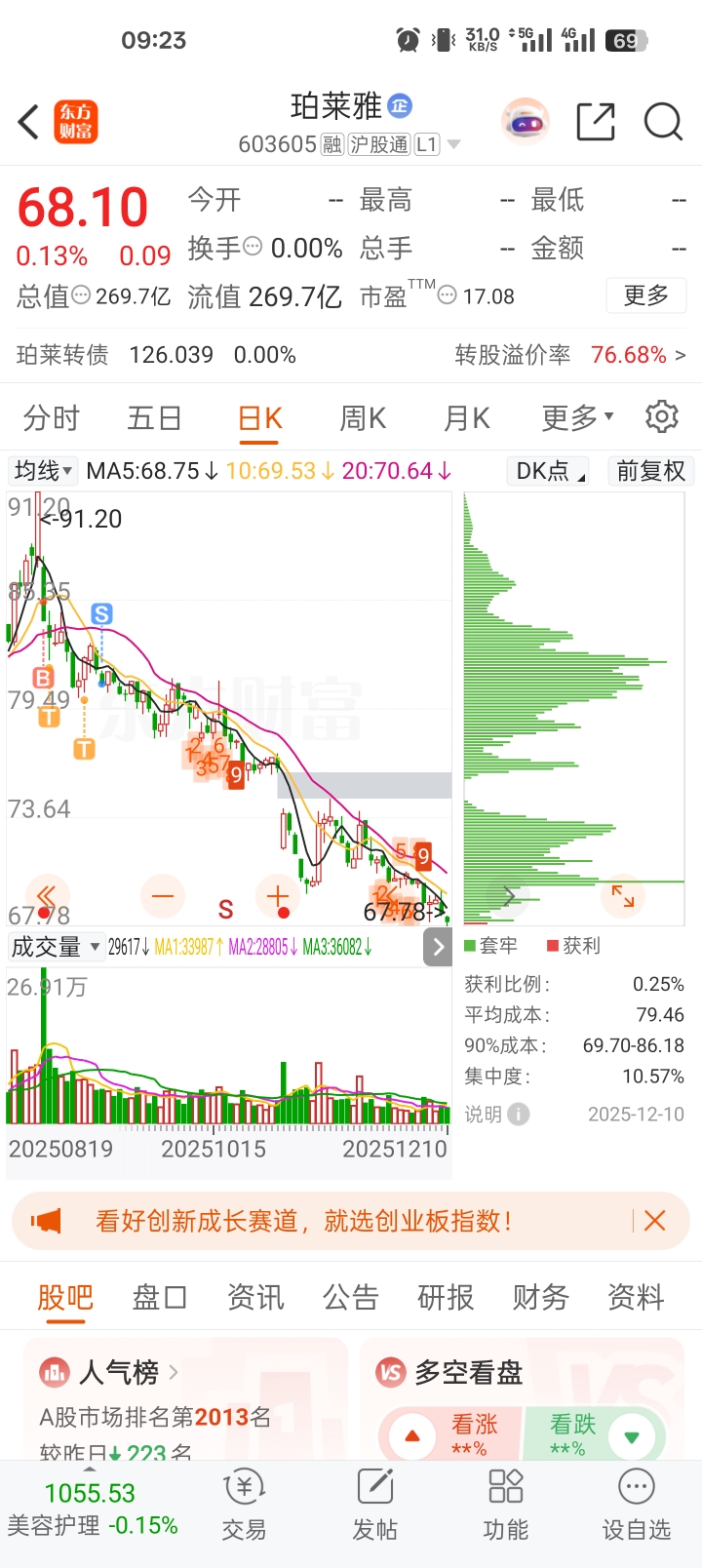 $珀莱雅(SH603605)$ 还以为是割肉,原来是逃命
