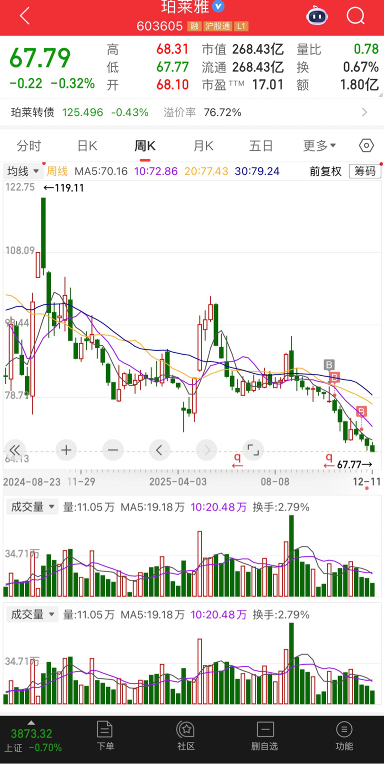 $珀莱雅(SH603605)$ 以为炒到底了,结果还有地下室,还有18层地狱。慢慢全仓这个股了,今年这个行情有多少人没赚钱的。