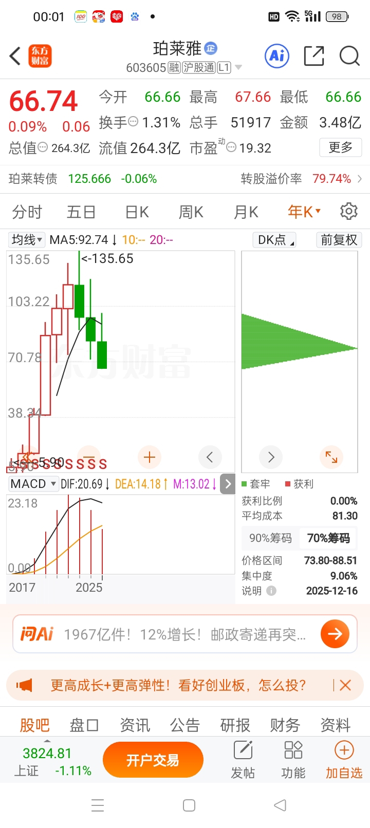 $珀莱雅(SH603605)$ 大股东既然还有100倍左右的利润吧,他们成本应该6毛左右