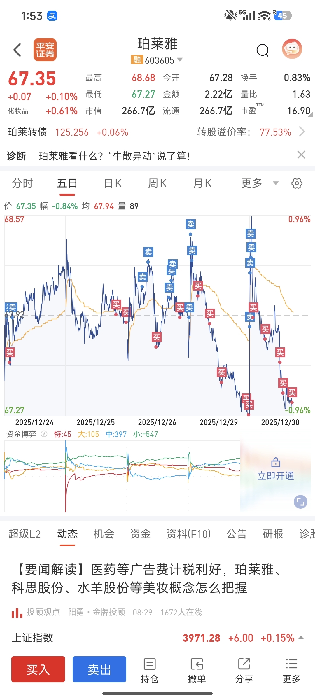 $珀莱雅(SH603605)$ 主力这是在震荡吸筹?