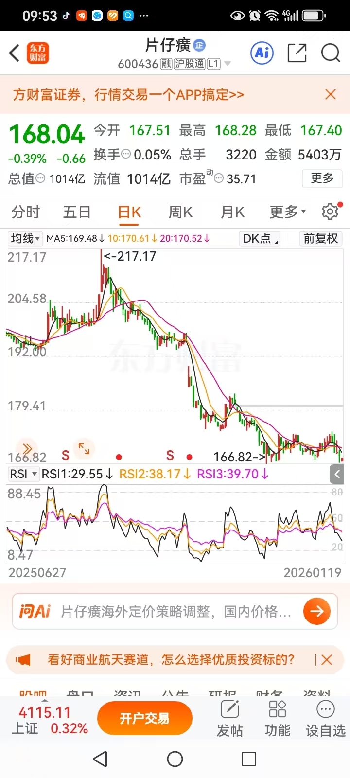 大家看看中药龙头片仔癀跌(底),小中药达仁堂,天目,沃华………涨。