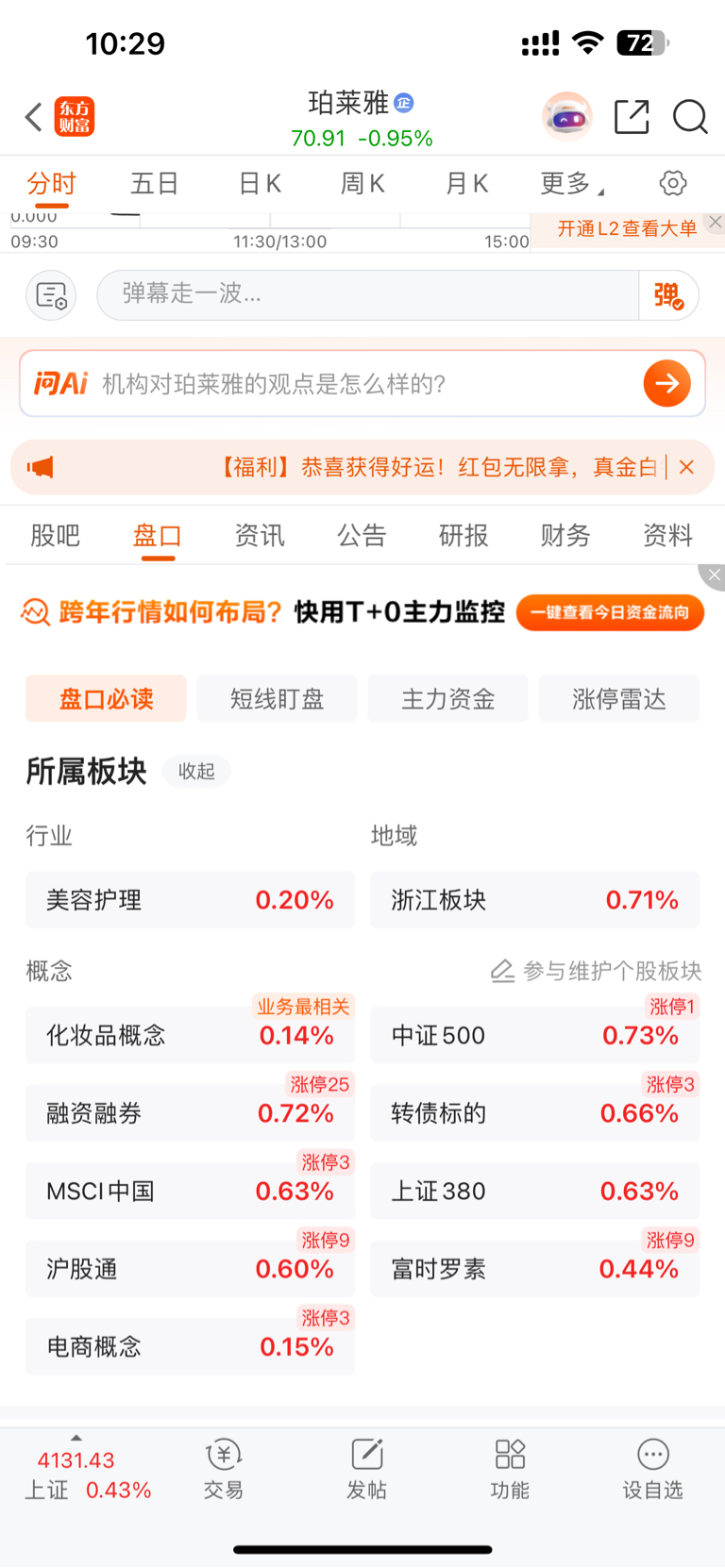 $珀莱雅(SH603605)$ 板块全红就你绿,赶紧回65,别装了