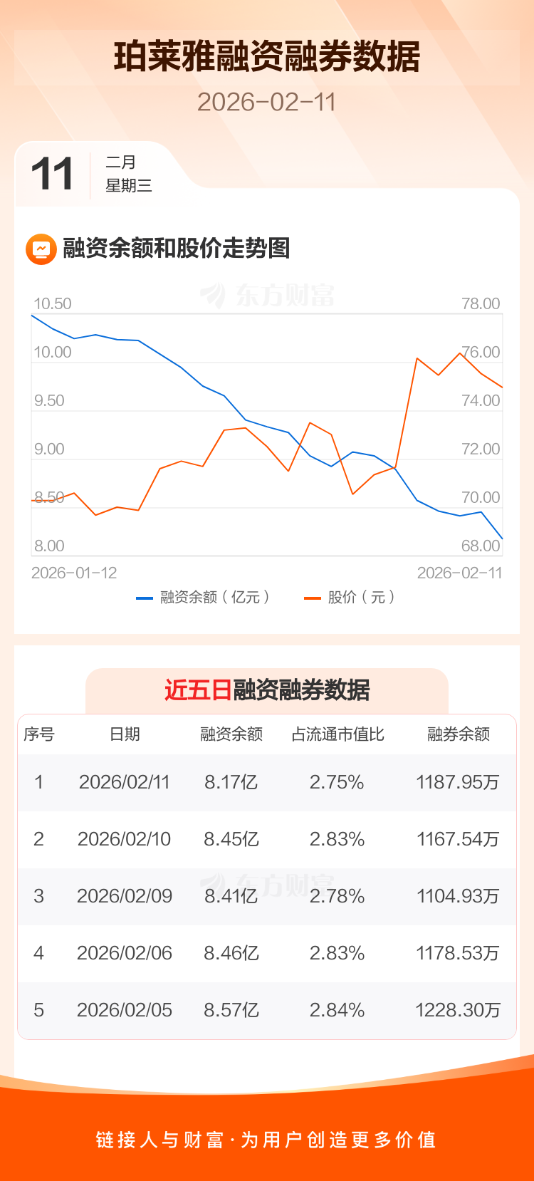 交易所最新数据显示,珀莱雅于2026年2月11日获融资买入3011.54万元,融资偿还5814.68万元,当日融资净偿还2803.14万元。目前,该股融资余额8.17亿,占流通市值比例为2.75%。