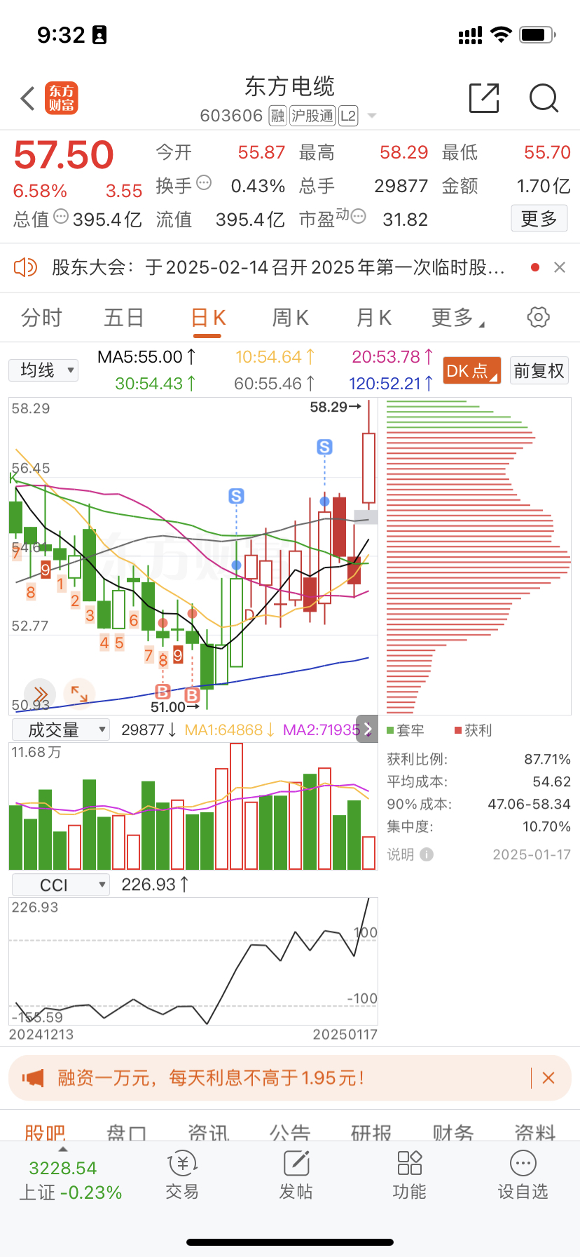 $东方电缆(SH603606)$ 卖飞了,昨天下午忙着上班没有接回来