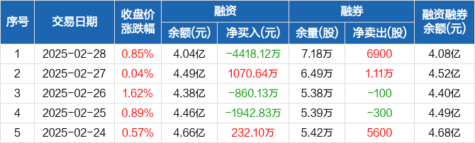 东方电缆:融资净偿还4418.12万元,融资余额4.04亿元(02-28)