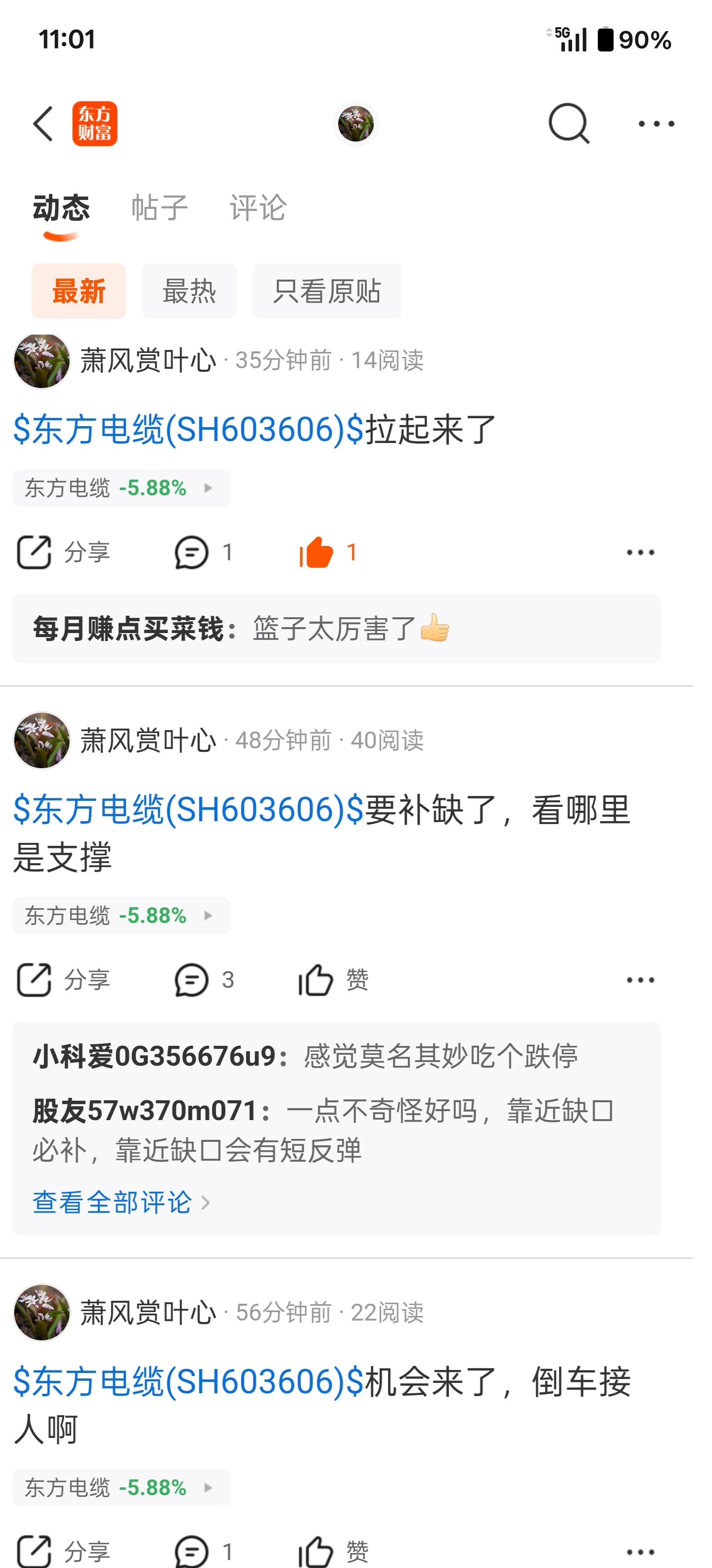 $东方电缆(SH603606)$ 你们是不是都把他@萧风赏叶心 拉黑了,怎么都来说我阿?这个哥们儿一直唱多,都没对几次,我最近一直看空,也没错几次阿,就都来喷我,我太委屈了!我今天抄底啦