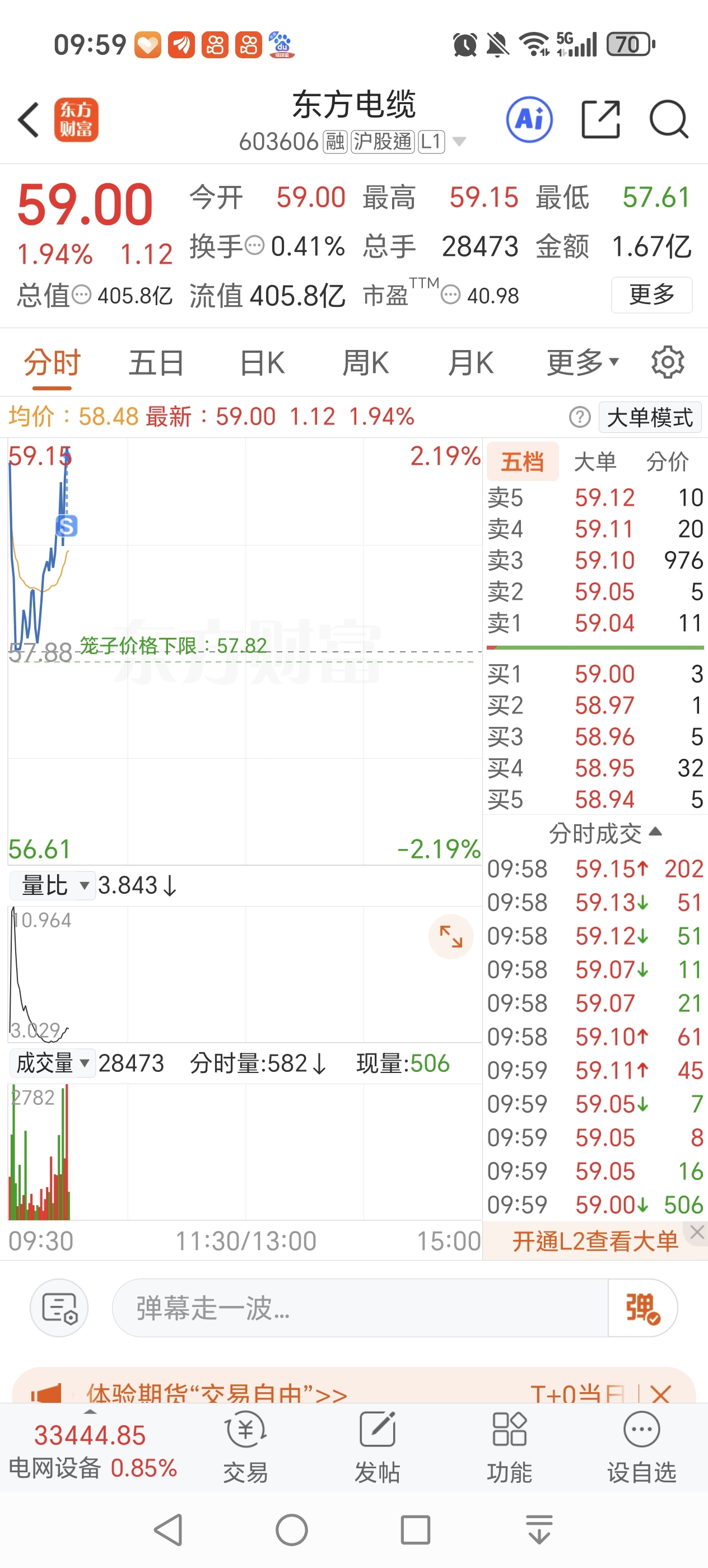 $东方电缆(SH603606)$ 卖飞了,大涨