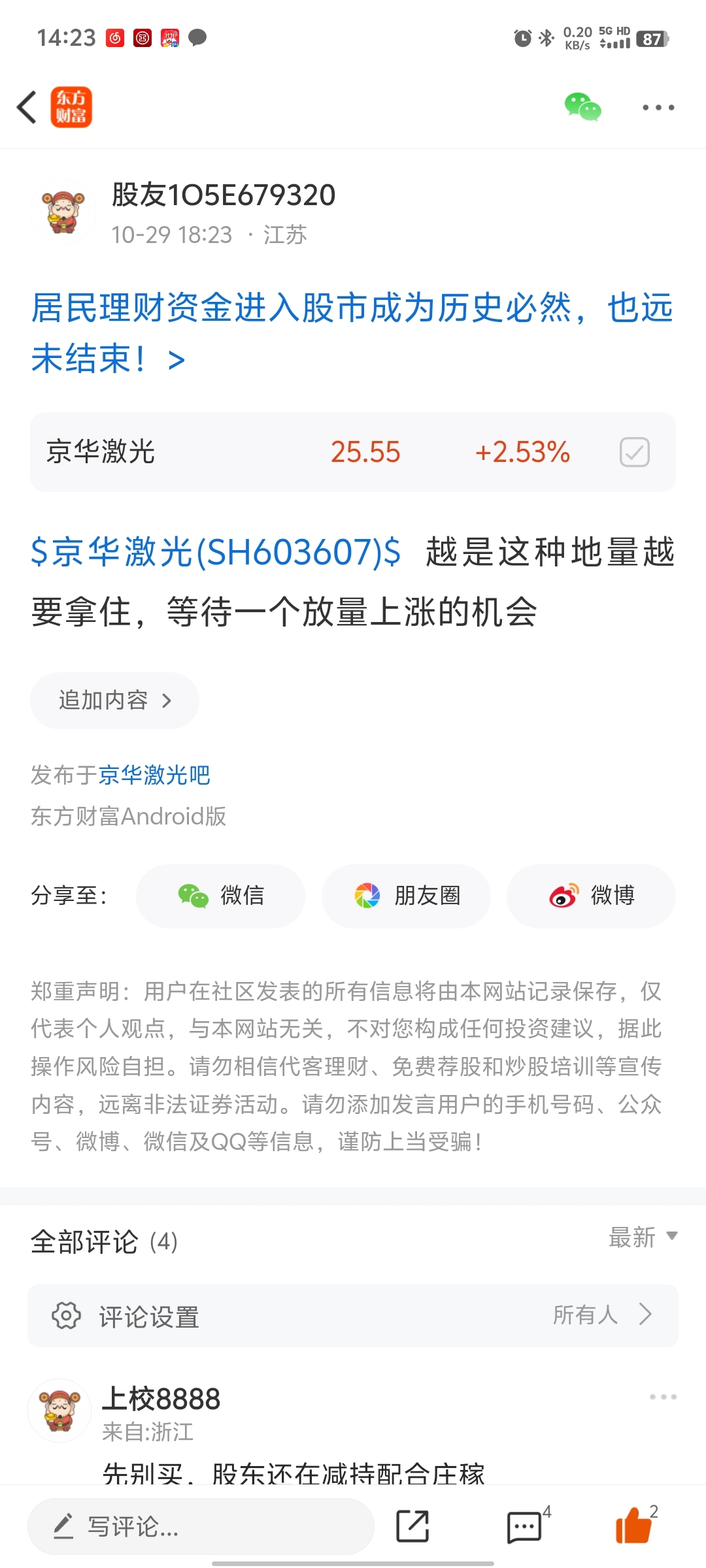 温馨提示: 1.根据《证券法》规定,禁止编造、传播虚假信息或者误导性信息,扰乱证券市场;2.用户在本社区发表的所有资料、言论等仅代表个人观点,与本网站立场无关,不对您构成任何投资建议。用户应基于自己的独立判断,自行决定证券投资并承担相应风险。《东方财富社区管理规定》