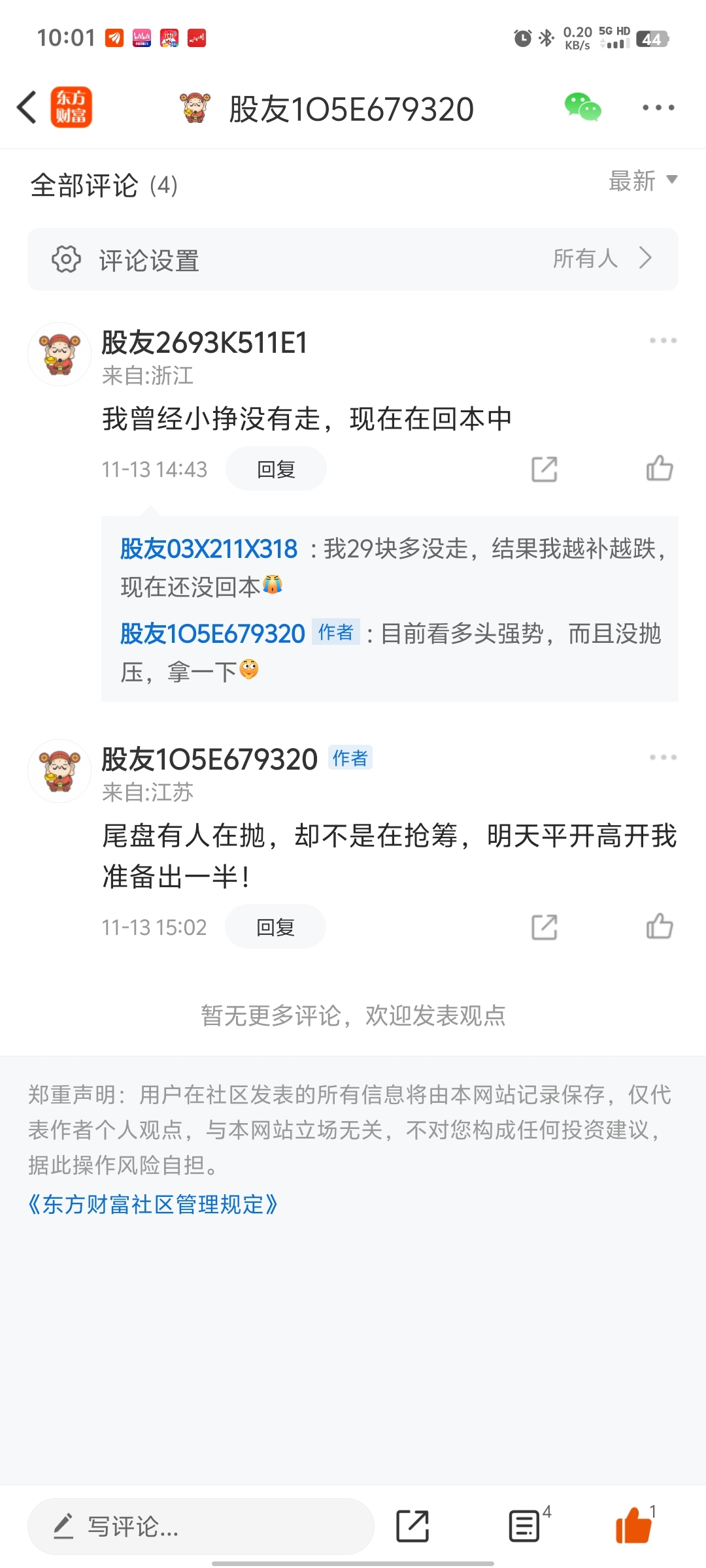 温馨提示: 1.根据《证券法》规定,禁止编造、传播虚假信息或者误导性信息,扰乱证券市场;2.用户在本社区发表的所有资料、言论等仅代表个人观点,与本网站立场无关,不对您构成任何投资建议。用户应基于自己的独立判断,自行决定证券投资并承担相应风险。《东方财富社区管理规定》