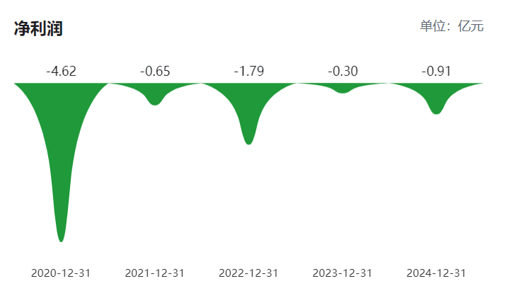 拉长时间线看,巨潮资讯数据显示,天创时尚在2020年—2024年连亏5年,归母净利润分别为-4.62亿元、-0.65亿元、-1.79亿元、-0.30亿元、-0.91亿元,五年合计亏损8.27亿元。
