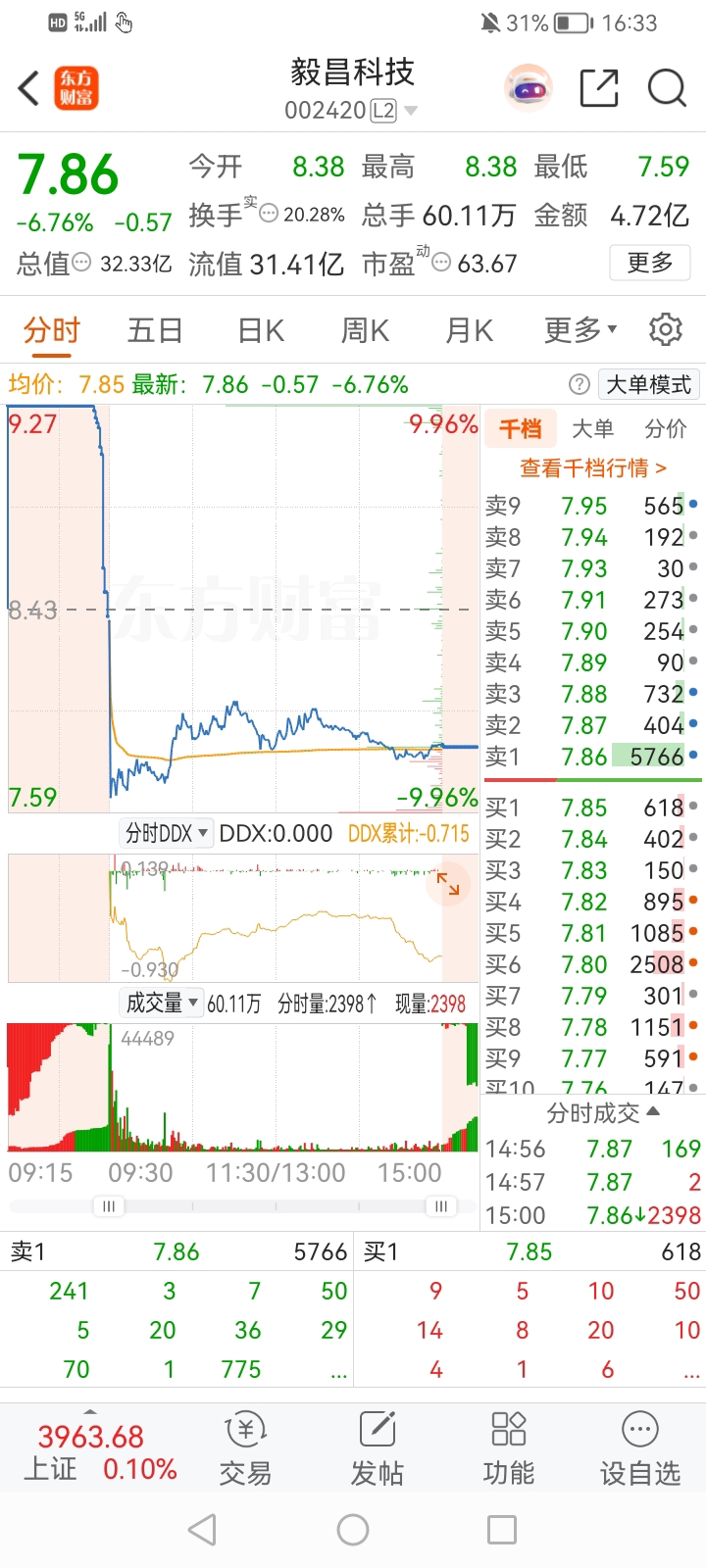隔壁的毅昌科技控制权变更为国资今日复牌低开低走,本来感觉天创时尚复牌应该有两个涨