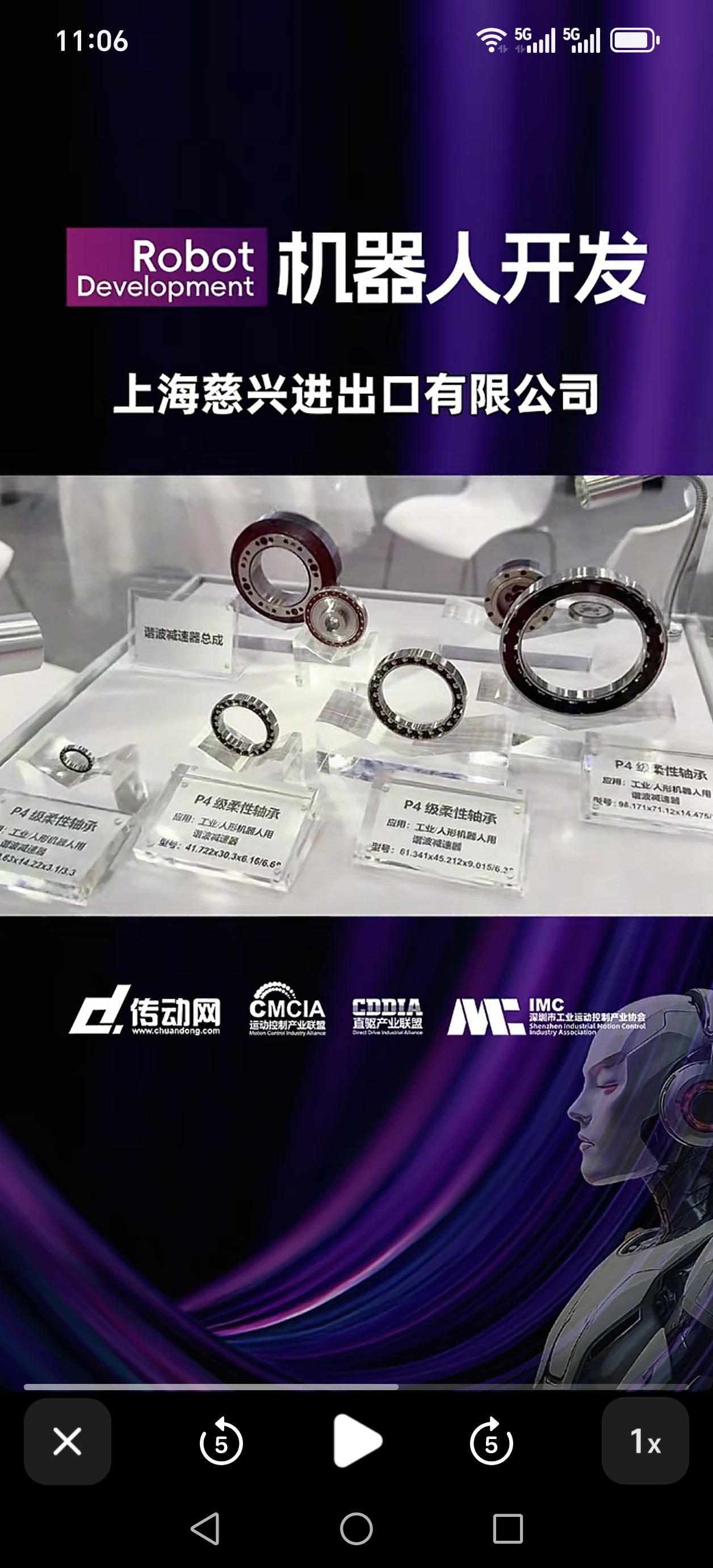 人形机器人:2025杭州国际人形机器人与机器人技术展:上海慈兴进出口有限公司展示了多系列用于人形机器人的柔性机器人轴承。