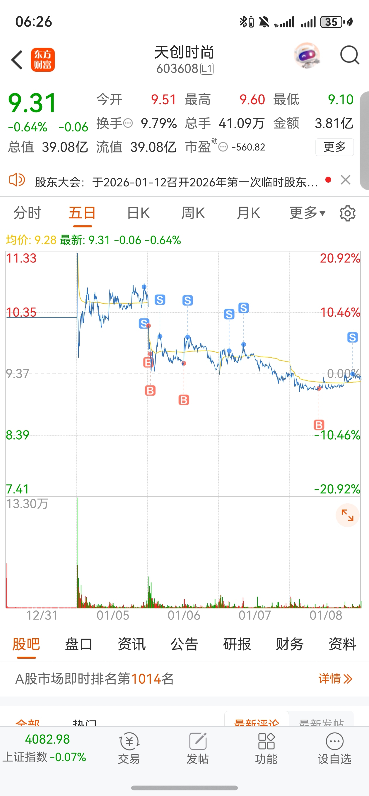 $天创时尚(SH603608)$ 这波下跌居然没亏,明天准备把仓位加大,出现了止跌信号了。